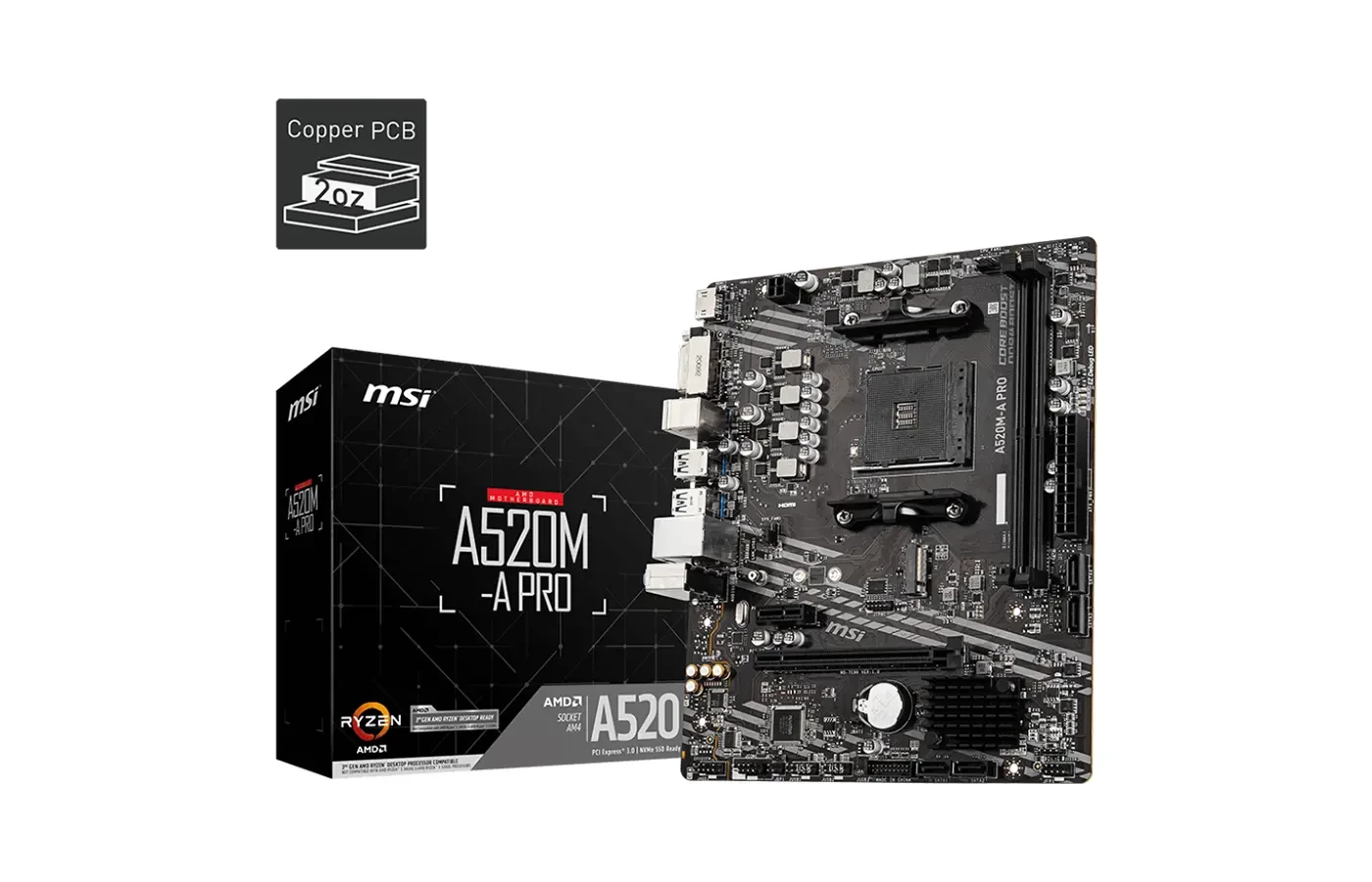 The MSI A520M-A PRO is a micro-ATX motherboard designed for AMD Ryzen processors, offering a balance of performance and essential features suitable for everyday computing tasks. Below is a summary of its key specifications: